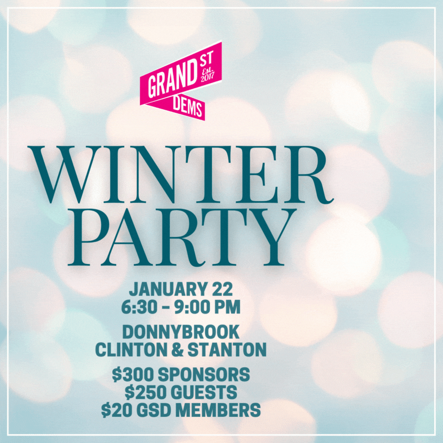 Celebrate the new year with Grand Street Dems! All sponsors will be acknowledged, and all tickets include a free drink.